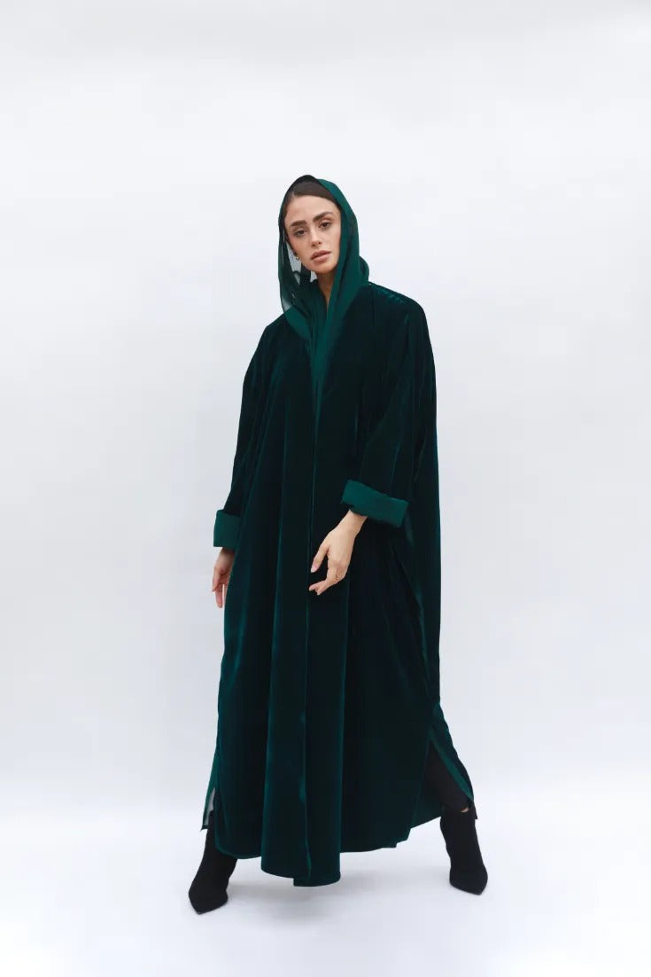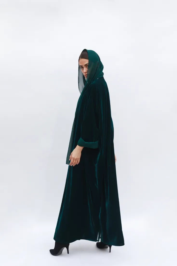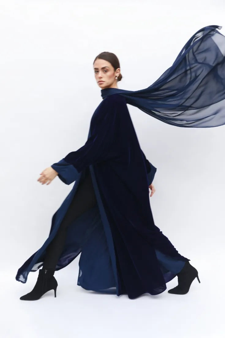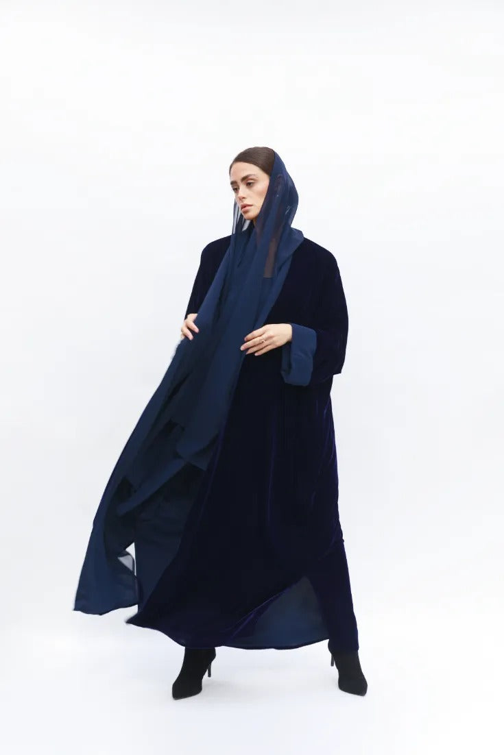 Introducing HALIN 3-14, a must-have for winter. This classy velvet abaya, with its elegant blend of chiffon and velvet, exudes sophistication and is perfect for any occasion, day or night.