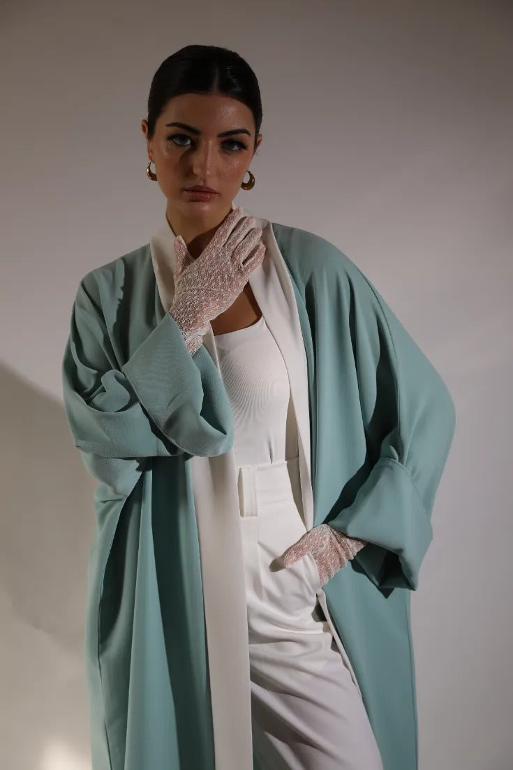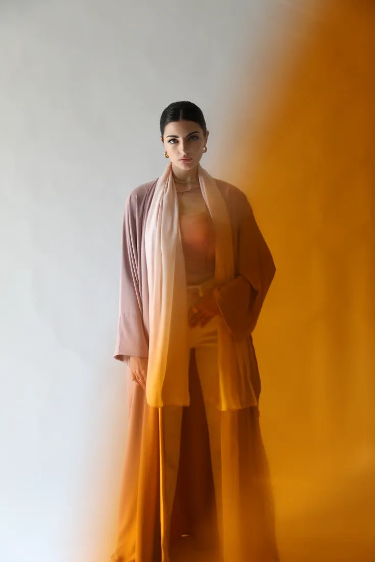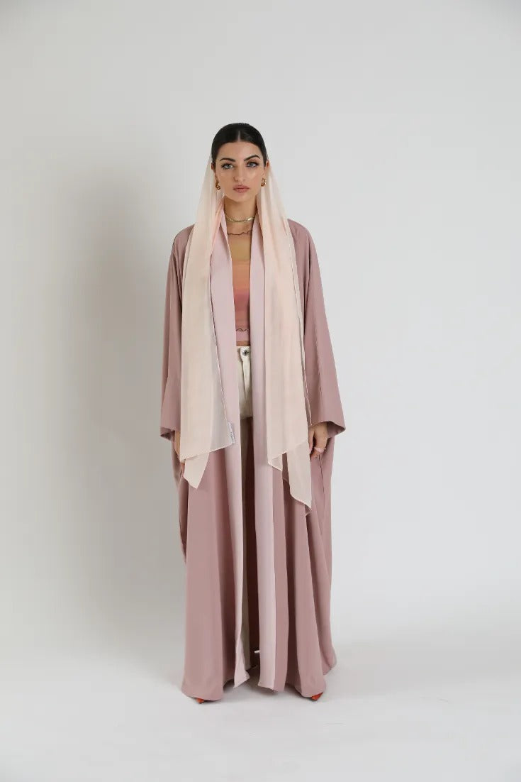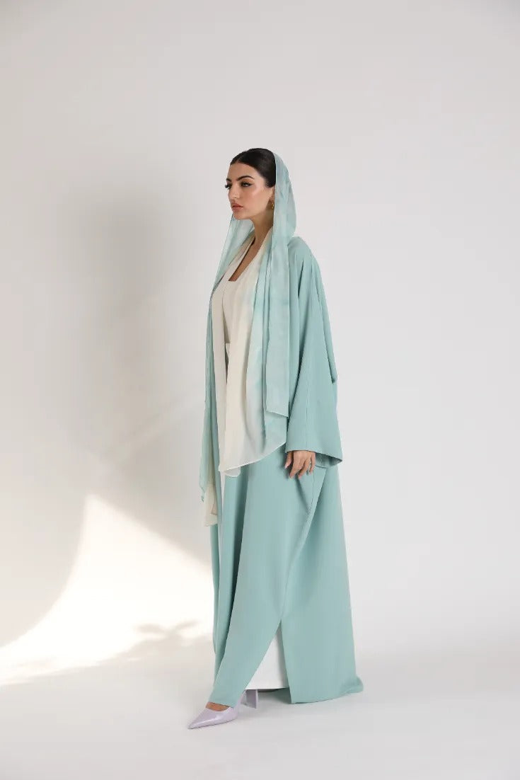 Introducing HALIN 6-3, a bright and elegant abaya perfect for summer. Made with a classy fabric and completed with a printed scarf, this abaya can be customized to a dark color for a unique touch.